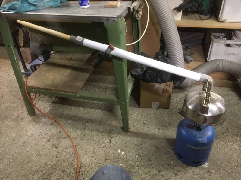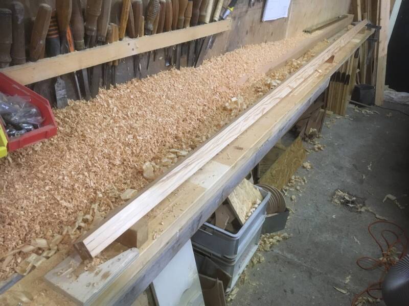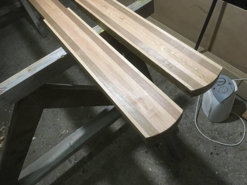 Now it is almost the end of May and finally the temperatures are rising a little so we can work with Epoxy glue again after a long cold period. We started making 4 rowing oars!