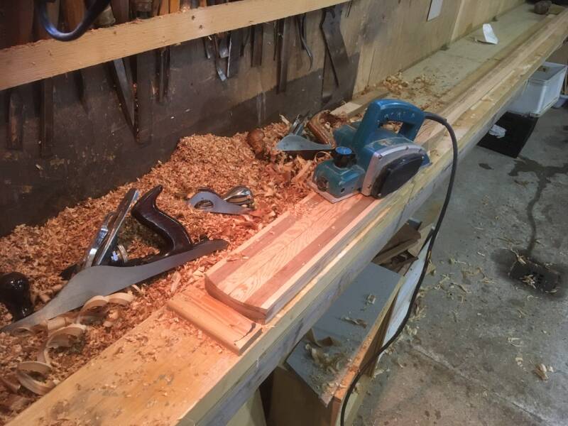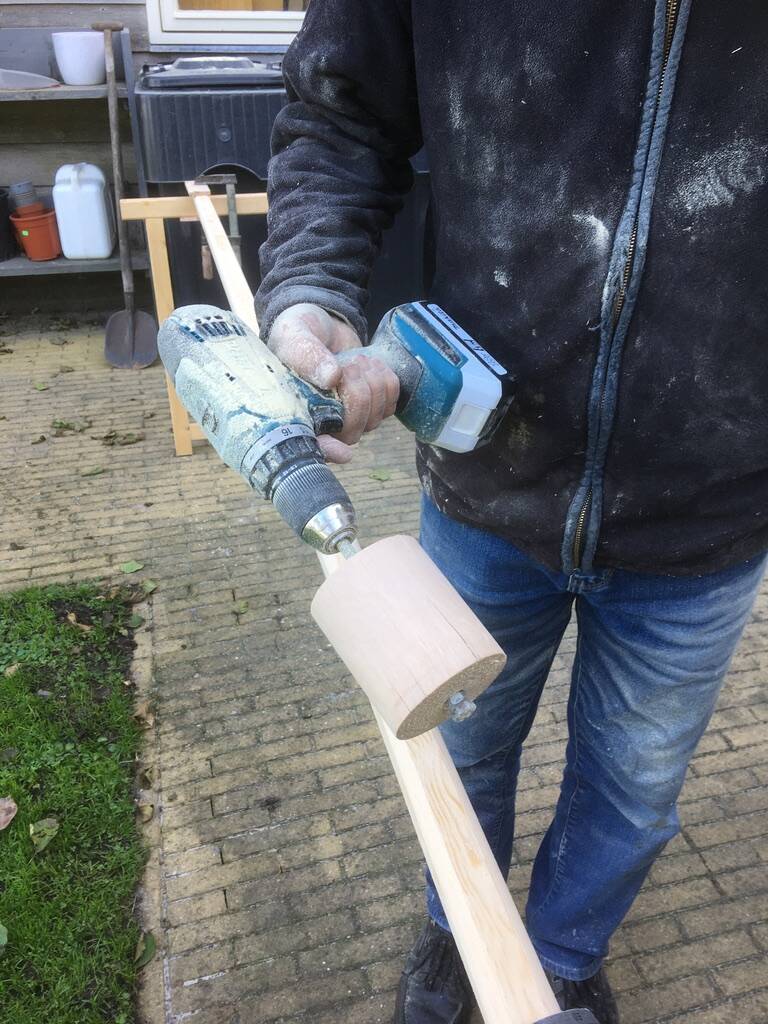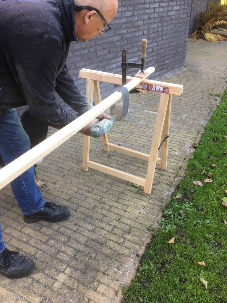 A whole day of planing and sanding with the reversed sand belt on the drill.