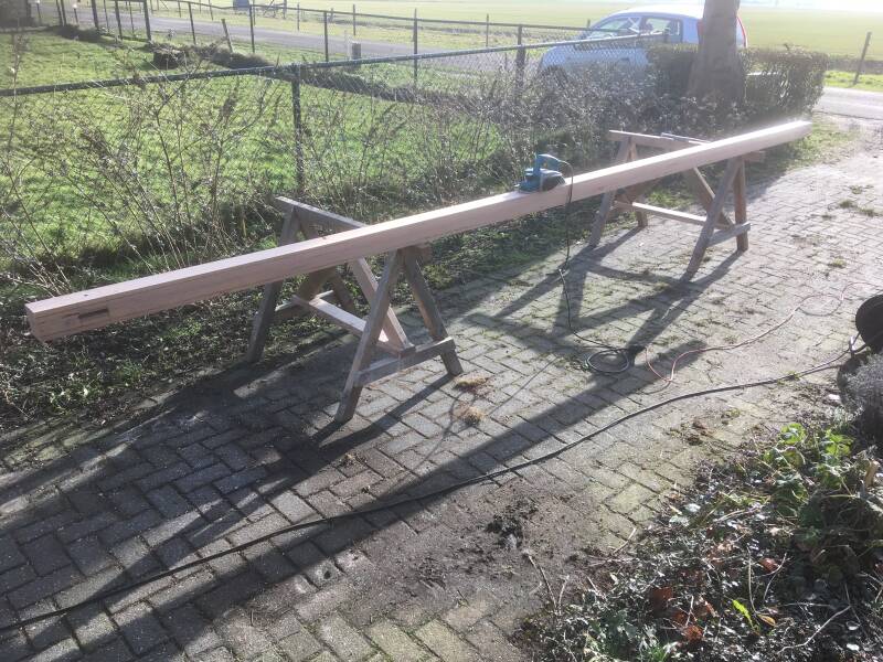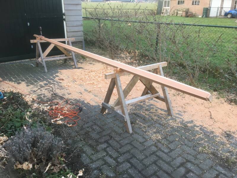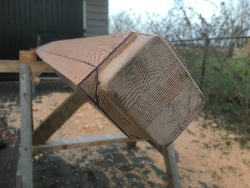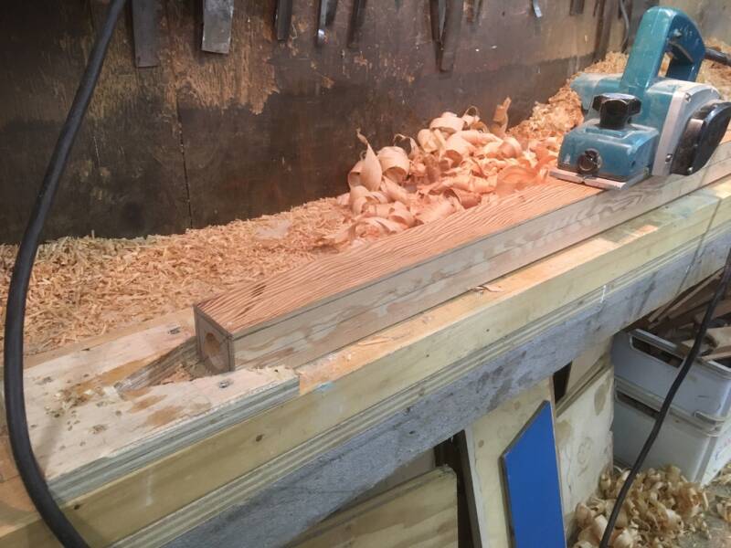 We started making the pole. Since this spar is the smallest we used it as tryout before working on the real stuff like the yard and and mast. They are all made of Oregon Pine which is pretty hard to get around here. It took a while but luckily we found some nice planks.