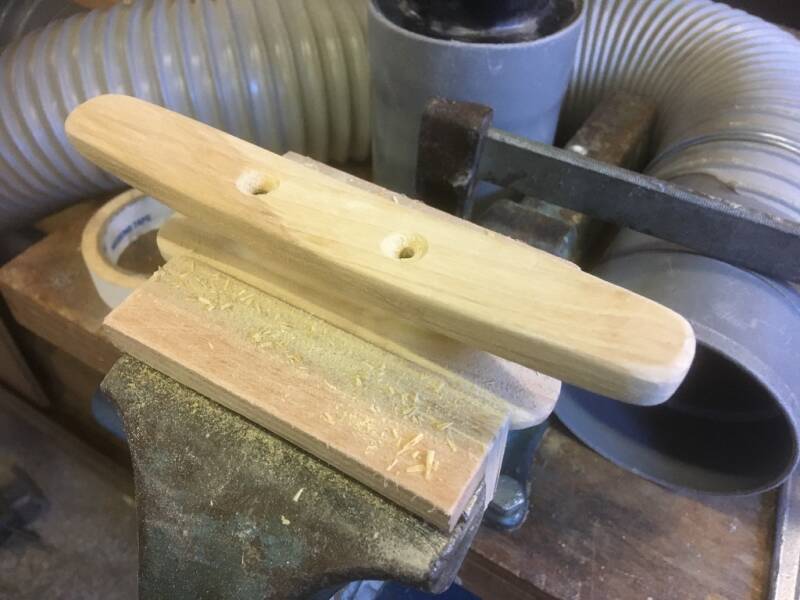 We drilled a 12 mm hole for the axle before we started shaping the mast so it would be straight.