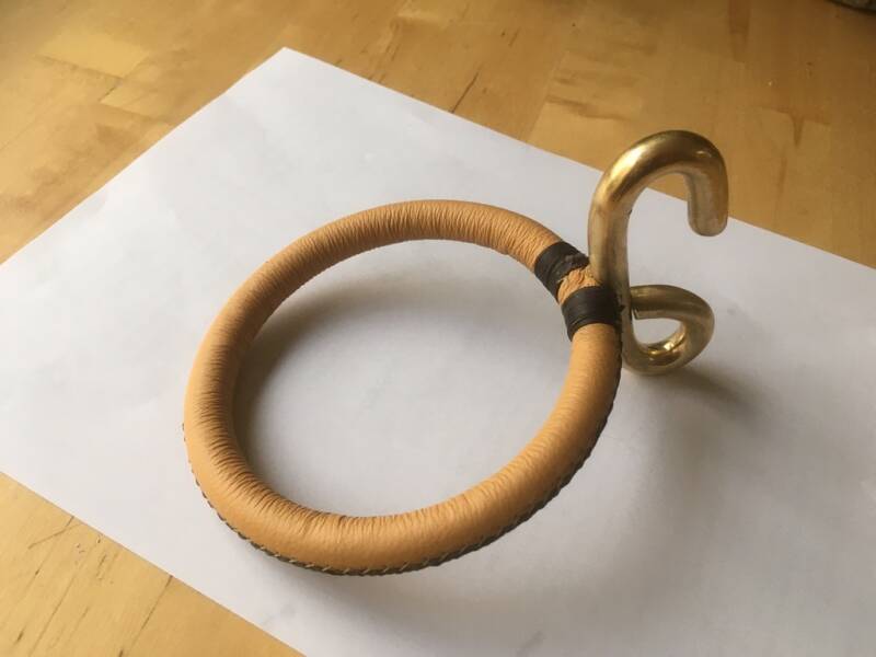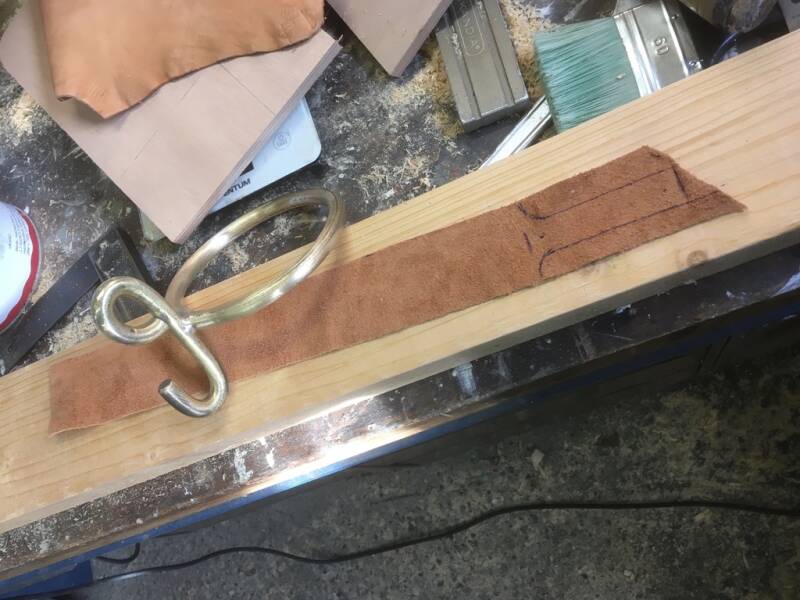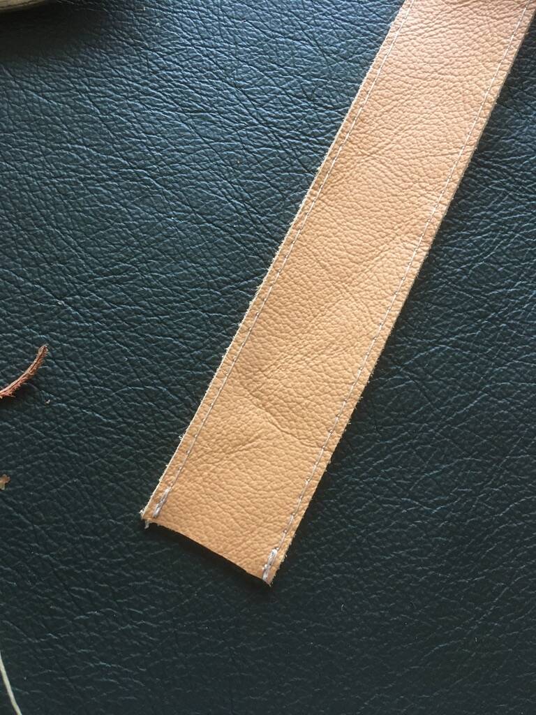 A first attempt covering the traveler with leather didn't work out too well. I didn't realise the leather strip would shrink in length when you sew the sides together.