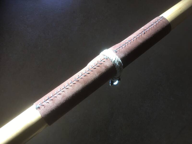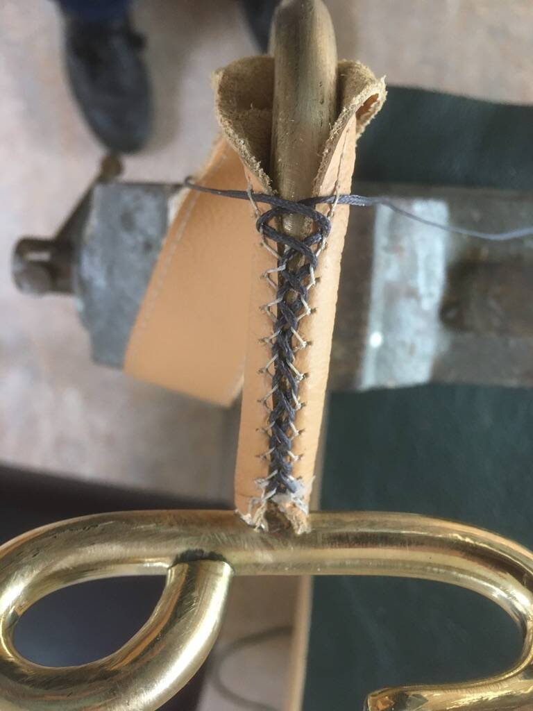 Stitched some leather around the yard after soaking the leather in warm water first.