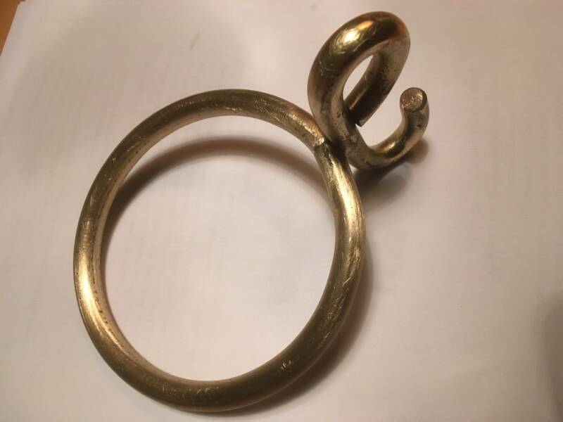Making a traveler out of brass wasn't easy. It was hard to bend the rod in a smooth circle. We used a plate mill to do so.