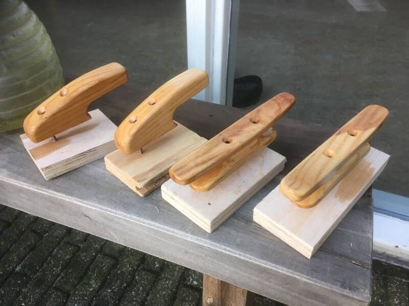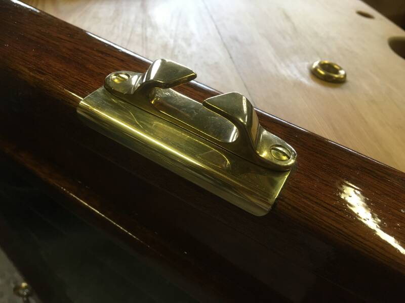 We made a brass plate underneath the fairlead to protect the wood against wearing by lines.