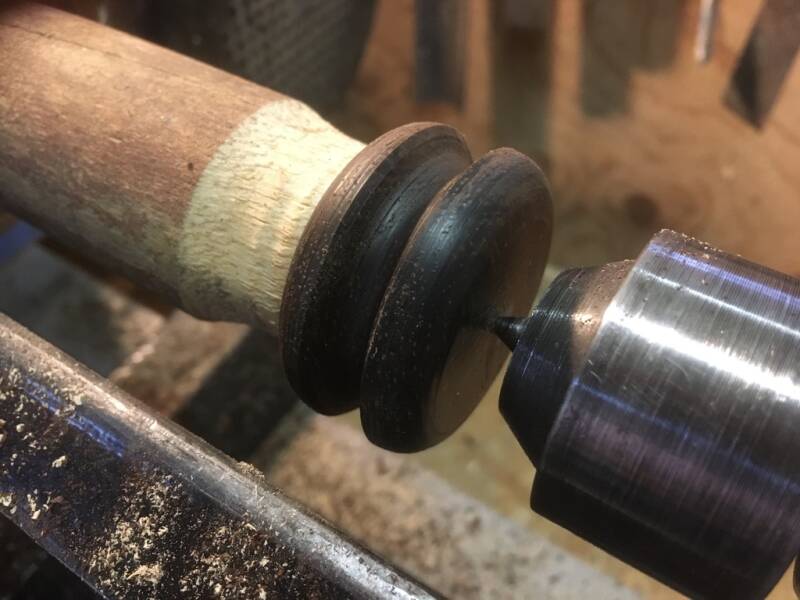 Making the cap out of Wengé wood. (A small piece had been lying around in the shed for more than 30 years!)