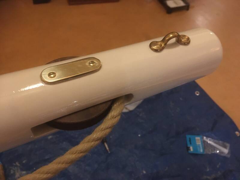 We also placed a smal brass bracket in case we want an extra line in the mast.