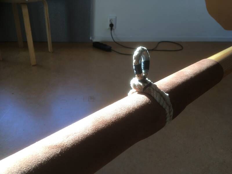 After three layers of DD-lacqer we applied hoists to the pole ends and satiated them with varnish and covered the pole with 5 layers of clear varnish.